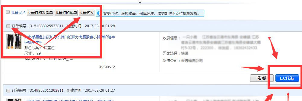 可单个订单一键导入,也可勾选需要代发的订单点『批量代发』批量下单