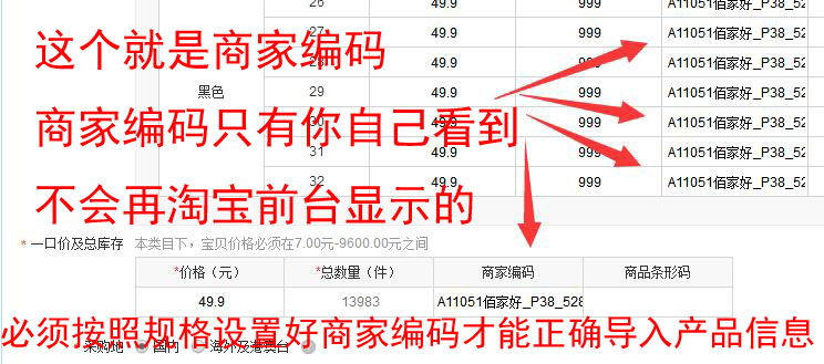 第三步:设置好产品商家编码,商家编码格式为:拿货档口 下划线 P价格 下划线 产品型号